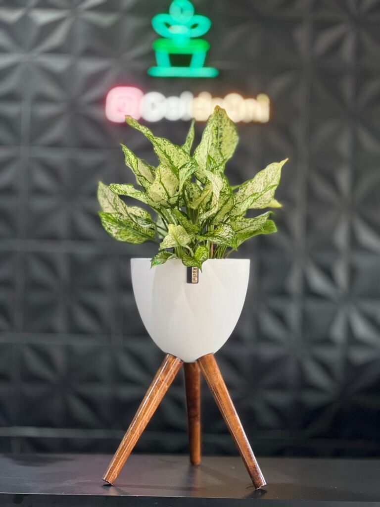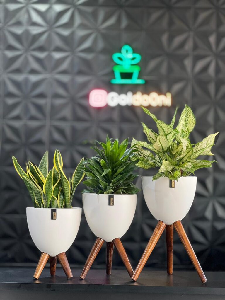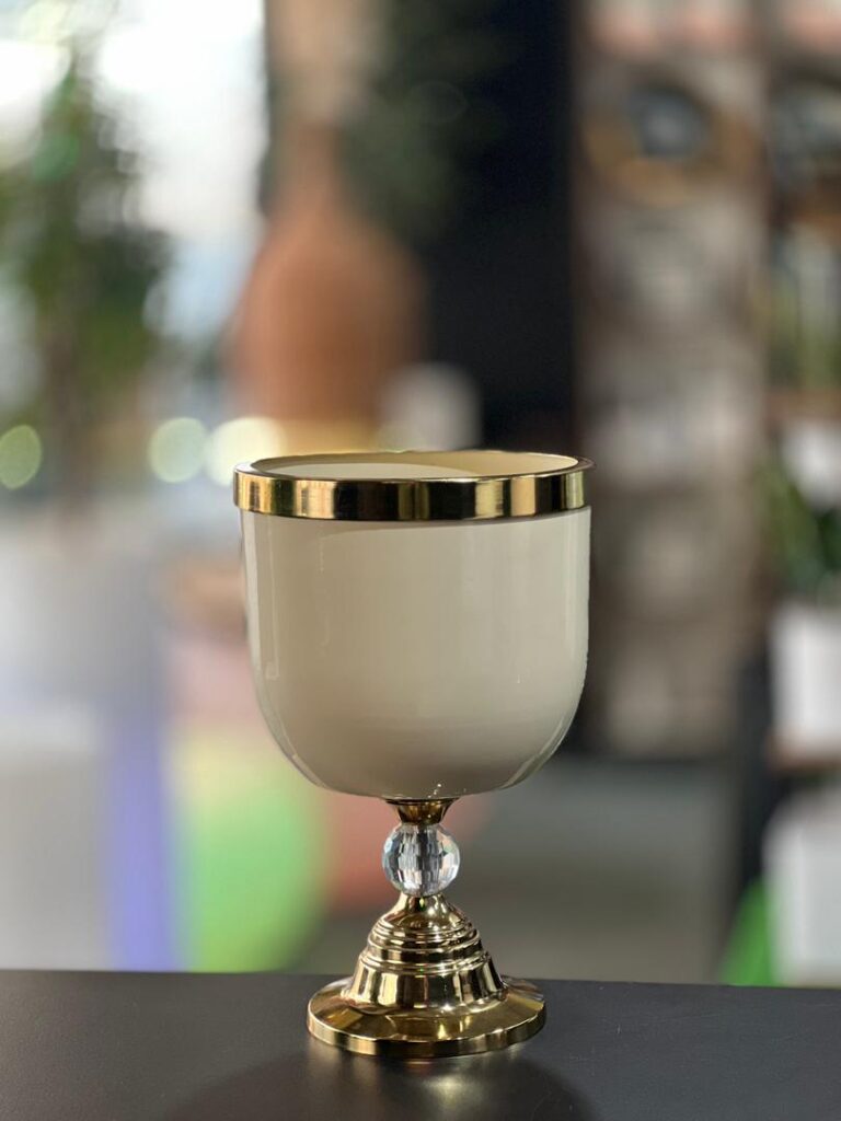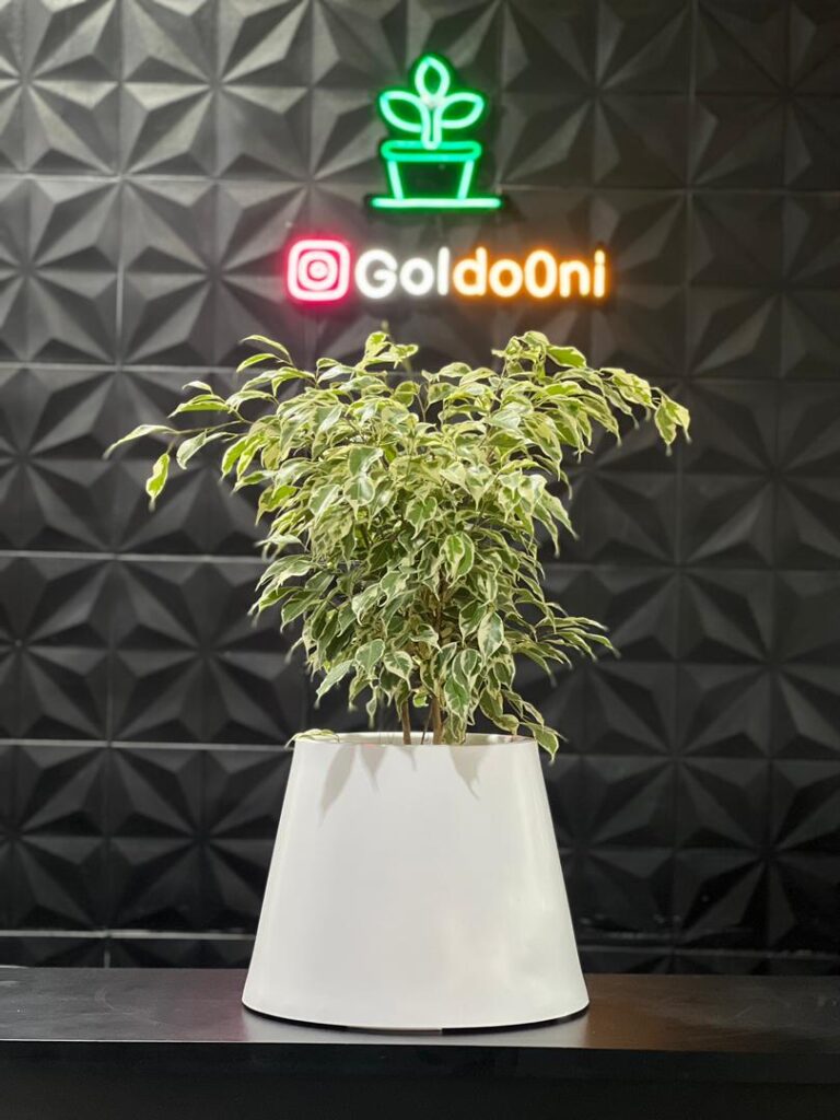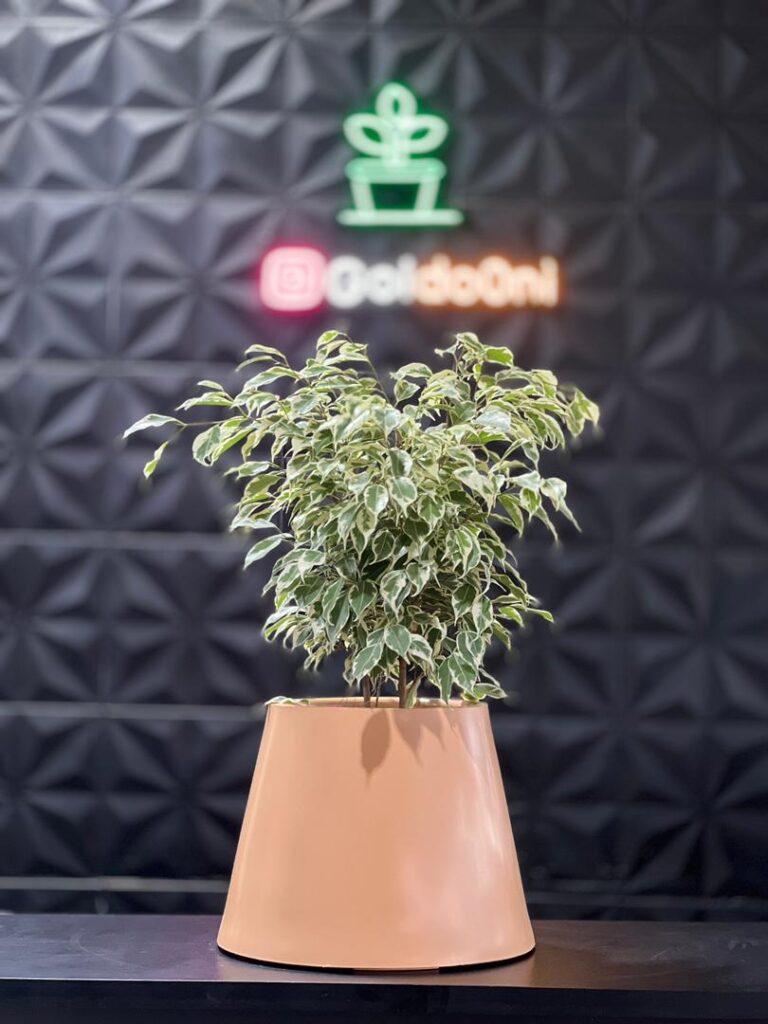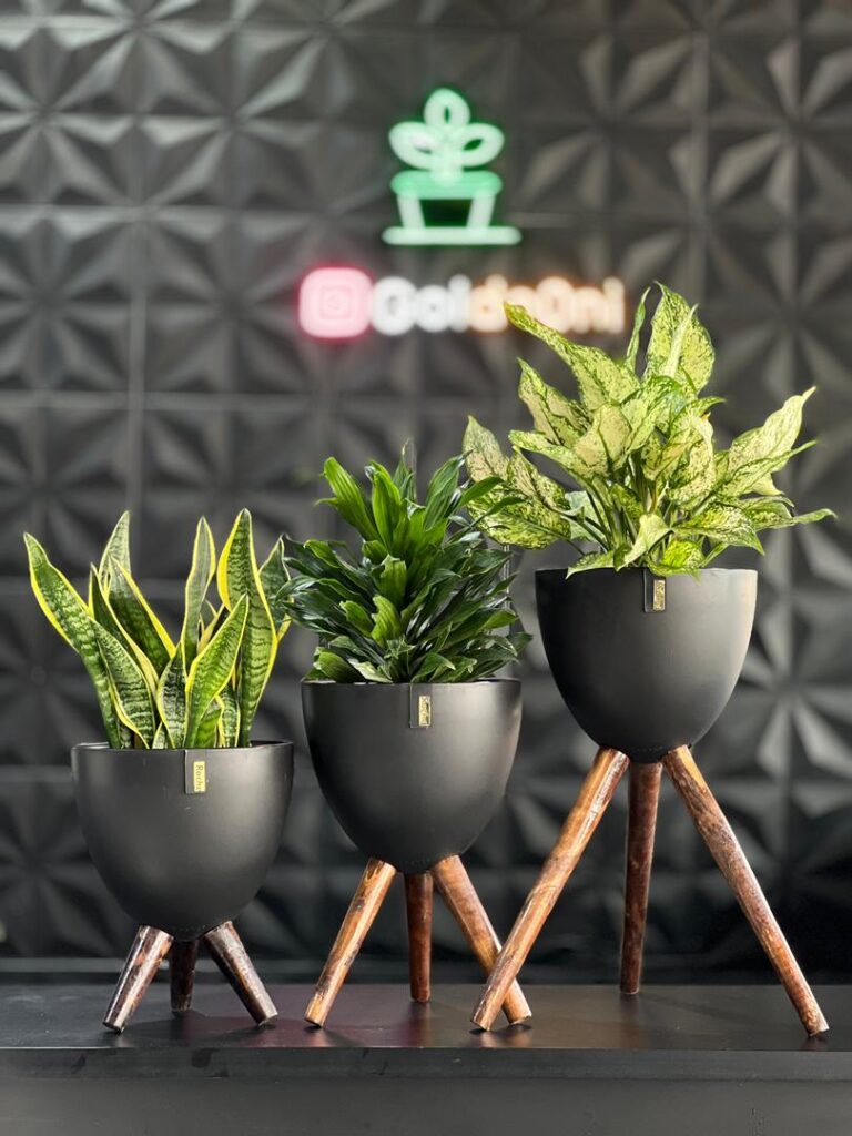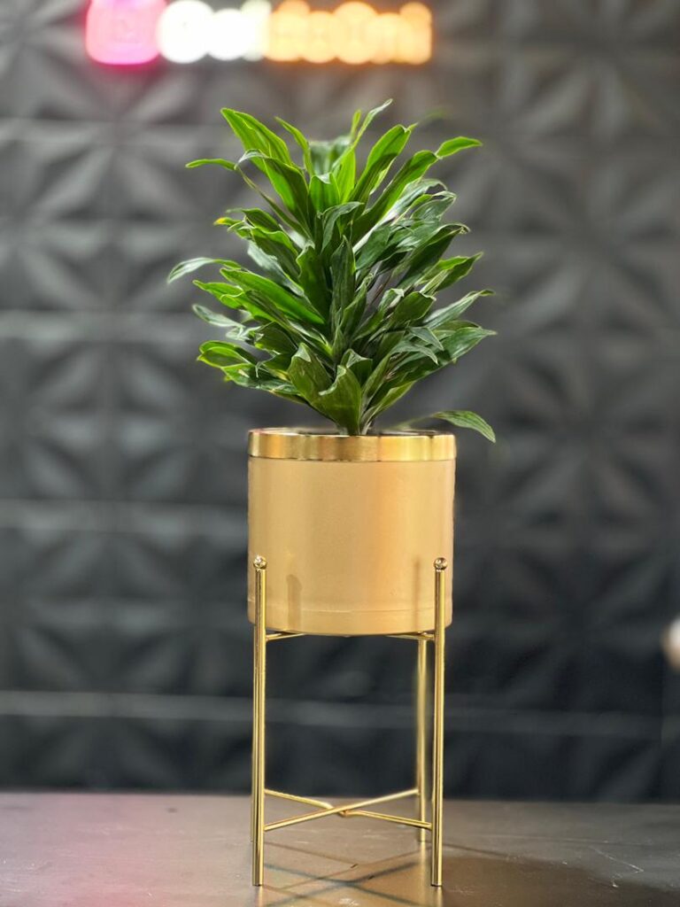 استند فلزی فورتیک 30-45-60 به همراه گلدان پلیمری لبه طلایی قطر 20