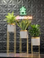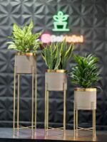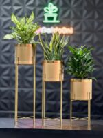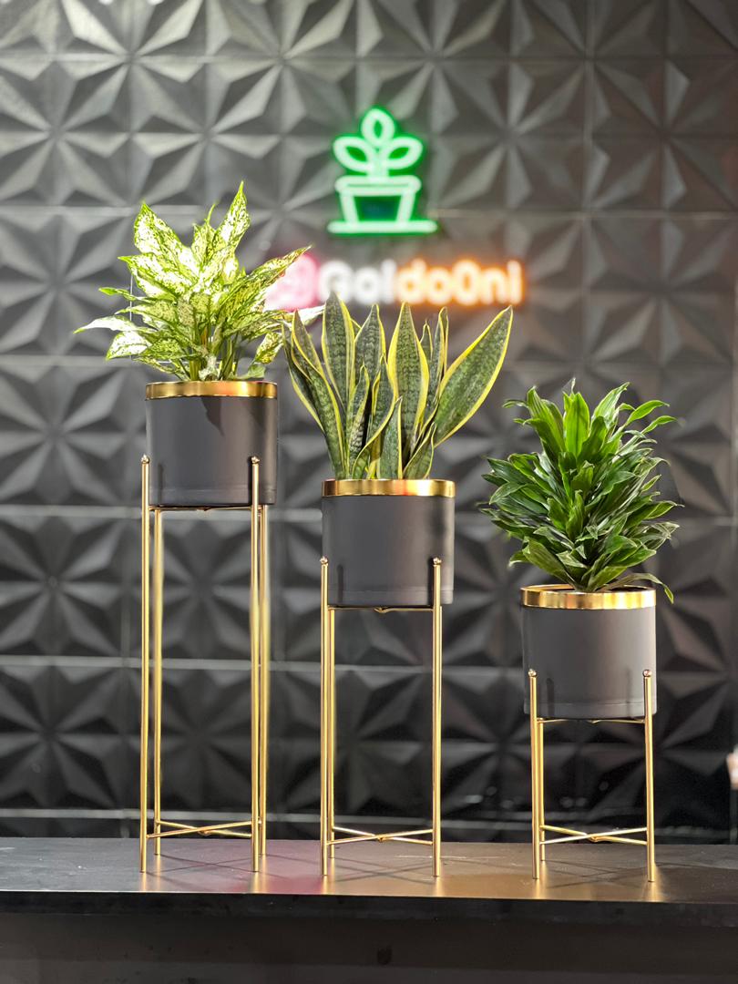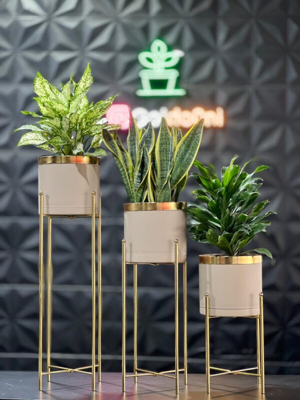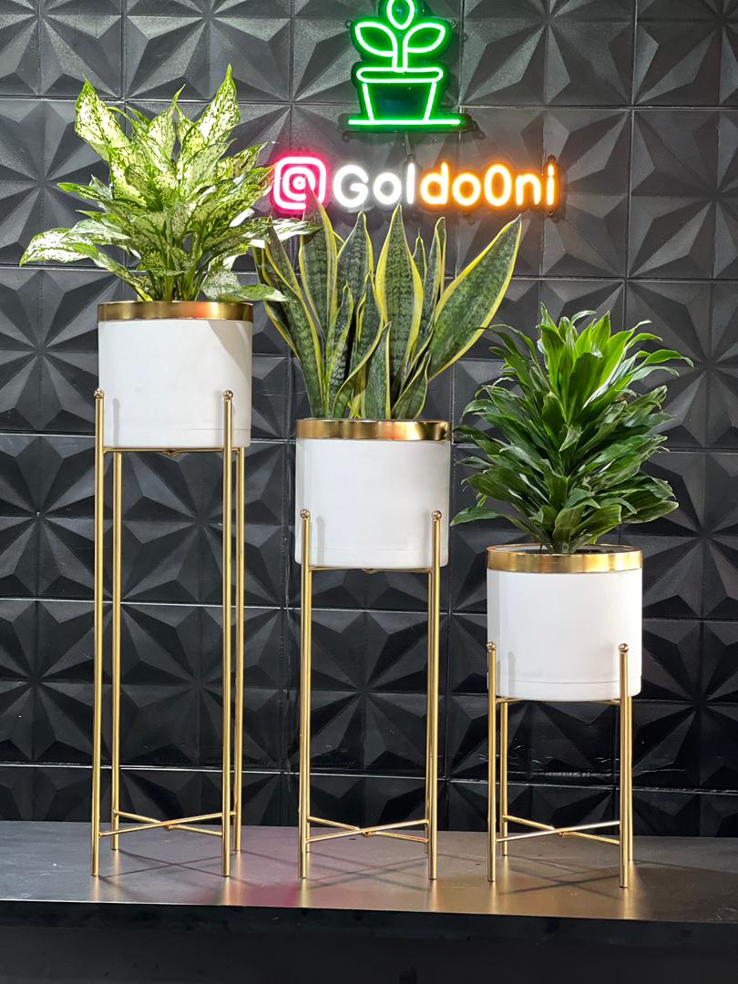 استند فلزی فورتیک 30-45-60 به همراه گلدان پلیمری لبه طلایی قطر 20