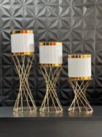 گلدان فایبر گلاس لبه طلایی مدل گلابی