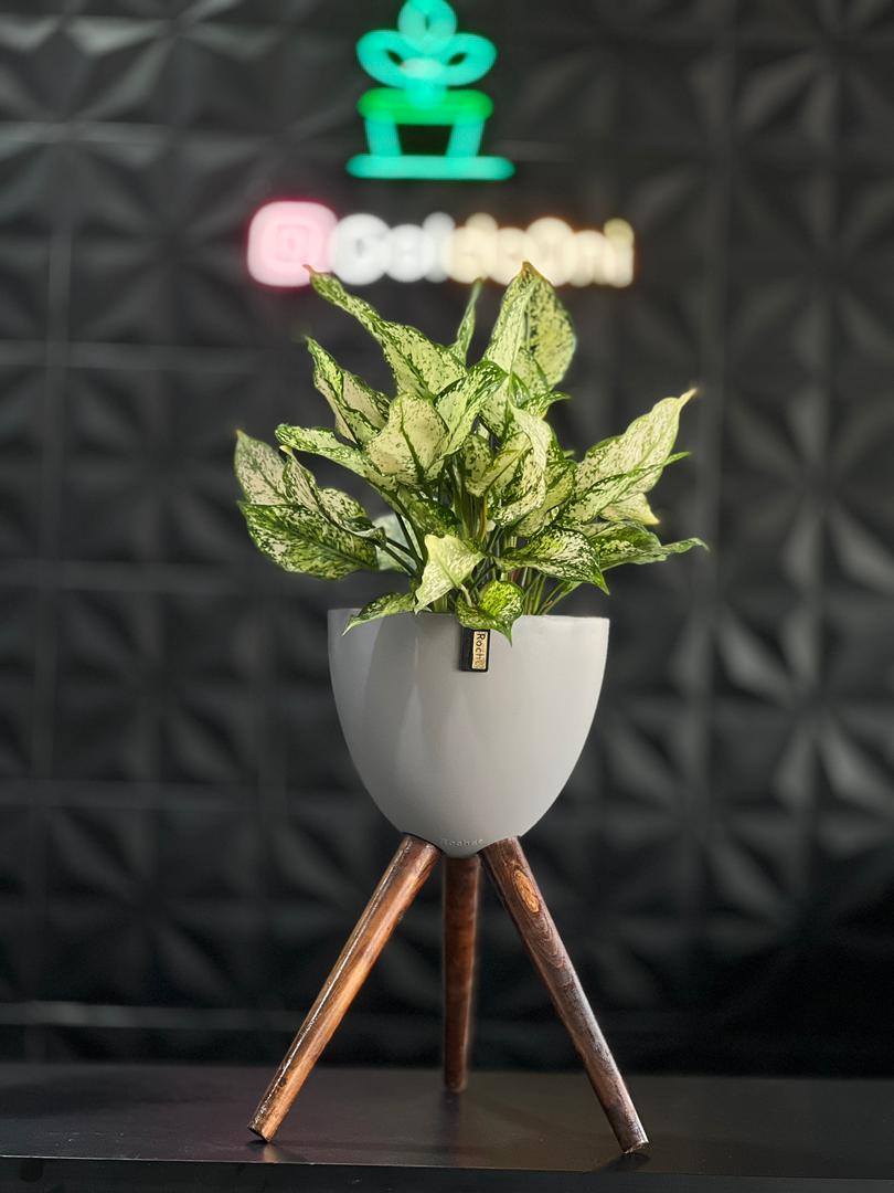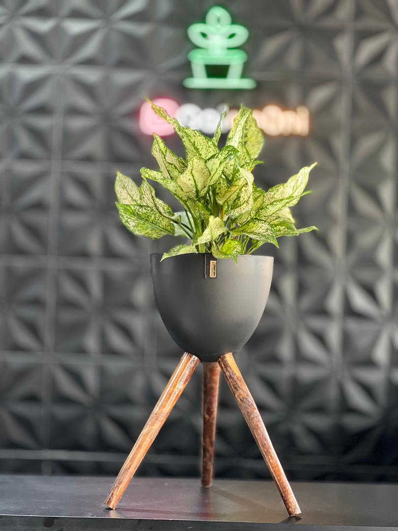 استند فلزی فورتیک 30-45-60 به همراه گلدان پلیمری لبه طلایی قطر 20
